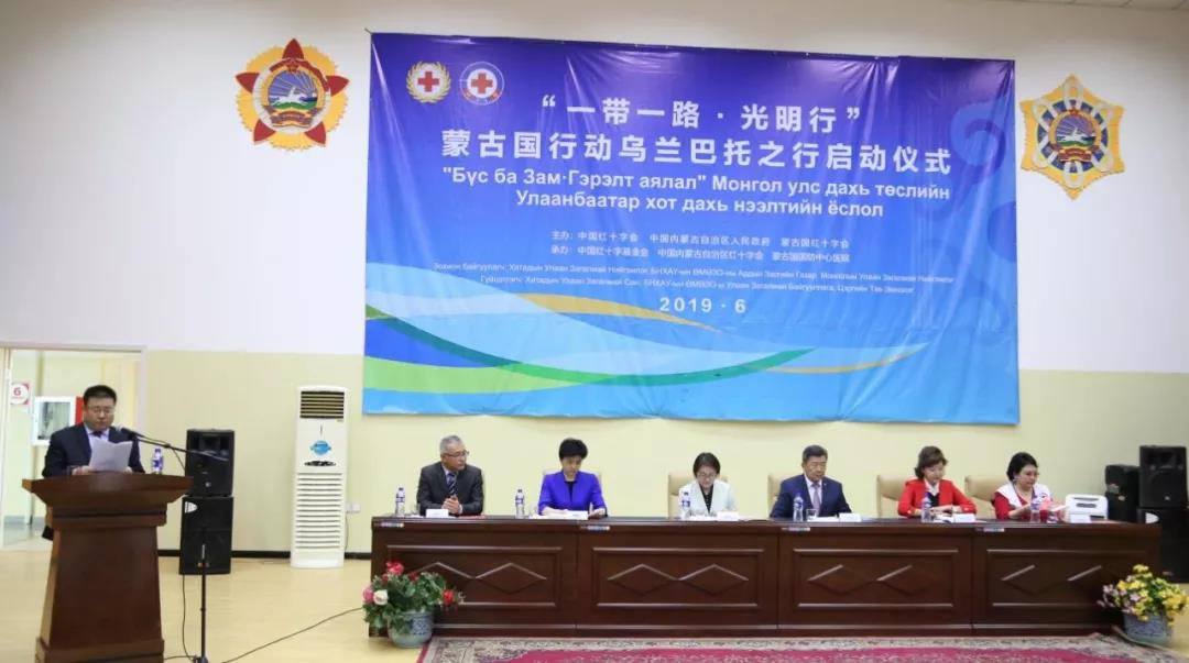 期間,楊永勝董事長(cháng)與訪(fǎng)問(wèn)團參加了內蒙古自治區紅十字會(huì )舉辦的“一帶一路?光明行”蒙古國行動(dòng)烏蘭巴托之行啟動(dòng)儀式和中國內蒙古自治區紅十字會(huì )向蒙古國紅十字會(huì )捐贈應急救護、康復醫療設施設備暨“紅十字博愛(ài)苑”項目剪彩儀式,并參觀(guān)了中蒙紅十字會(huì )文化展廳和內蒙古援建“紅十字博愛(ài)苑”。中國紅十字會(huì )常務(wù)副會(huì )長(cháng)梁惠玲,內蒙古自治區主席、紅十字會(huì )名譽(yù)會(huì )長(cháng)布小林出席“一帶一路?光明行”蒙古國行動(dòng)烏蘭巴托之行啟動(dòng)儀式。