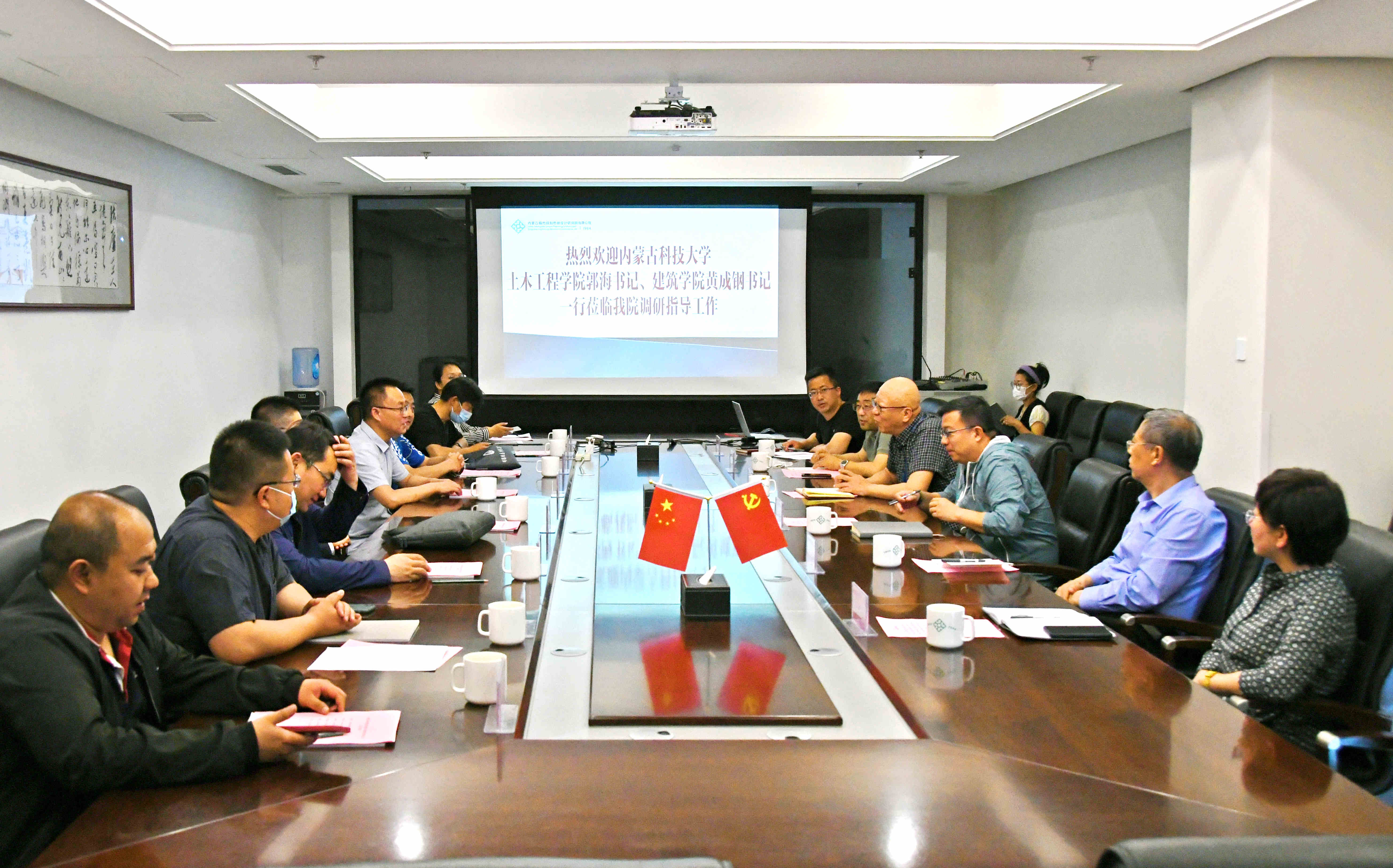 王海濱院長(cháng)向郭海書(shū)記、黃成鋼書(shū)記一行介紹了我院的基本情況。并表示我院與內蒙古科技大學(xué)土木工程學(xué)院和建筑學(xué)院在綠色建筑研究等領(lǐng)域有廣泛的技術(shù)與人才合作空間,希望雙方加強溝通聯(lián)系,也期望內蒙古科技大學(xué)培養和推薦更多的優(yōu)秀畢業(yè)生到我院發(fā)展,共同為提升自治區勘察設計行業(yè)技術(shù)水平貢獻智慧和力量。