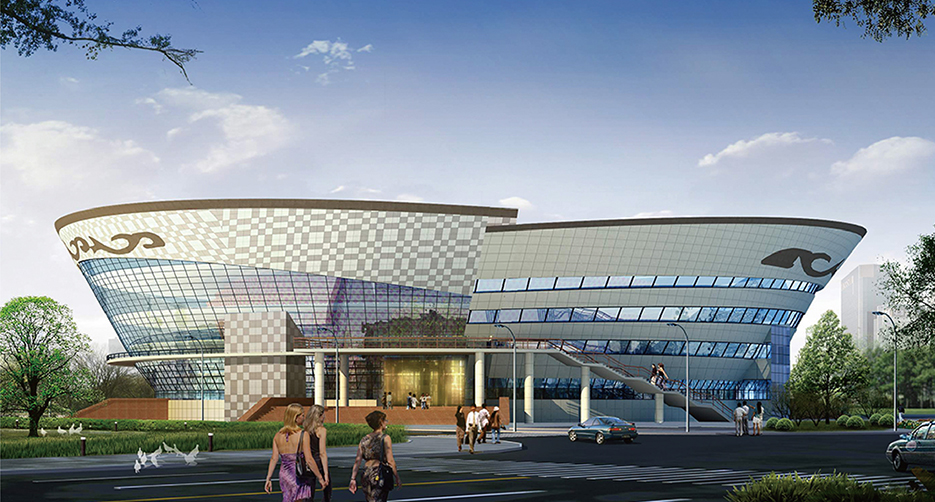 主體為單層建筑,局部三層,總建筑高度28.5m,結構形式為框架結構,屋頂為網(wǎng)架結構。