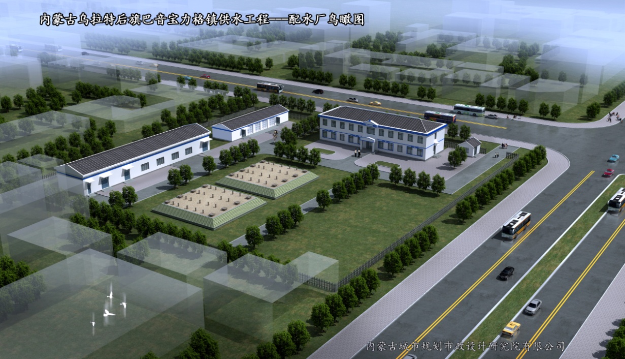 《烏拉特后旗巴音寶力格鎮供水工程初步設計、施工圖》2015年——該項目主要工程內容為(1)水源地:新增11眼水源井及配套設備,新建4610米連井管線(xiàn),管徑DN200mm-400mm;(2)配水廠(chǎng):新建兩座1500m3清水池、二級加壓泵房、加氯間、配電間、綜合辦公樓、機修間及廠(chǎng)區配套工程;(3)輸配水管線(xiàn):新建31900米輸水管線(xiàn),2730米配水管線(xiàn),管徑DN400mm。項目總投資為5312萬(wàn)元。